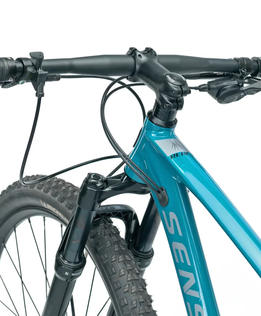 O quadro da bicicleta possui tubos com furos específicos por onde os cabos do canote dropper são passados internamente. Isso protege os cabos de sujeira, detritos e possíveis danos