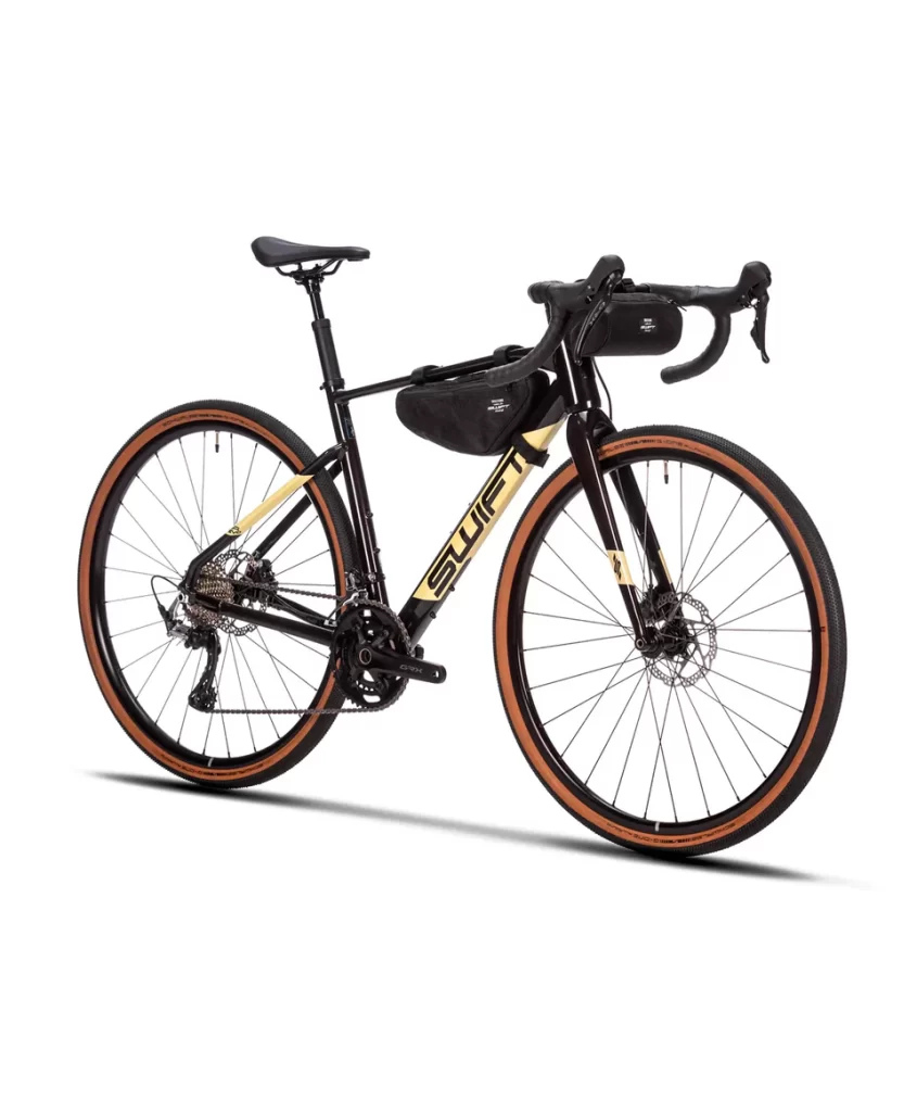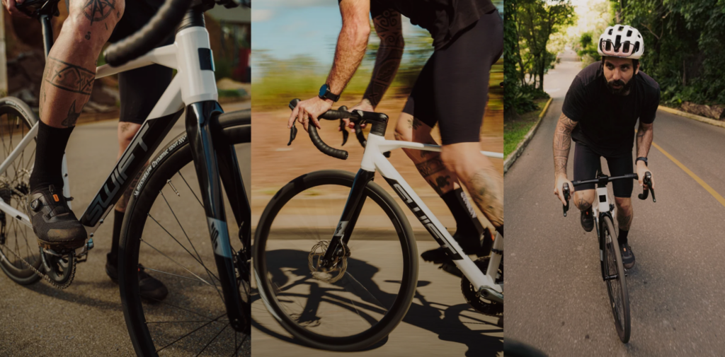 Rodas: SWIFT à disco center lock /Cubos Shimano HB-RS470 eixo e-thru 12mm x 100mm com aros Swift de alumínio 28″ com altura de 22mm, largura 23mm, 28 furos, raios Sapin lead 2.0 – TUBELESS
